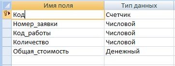 Рисунок 3.6 – Таблица «Заявки» В) Таблица «Список_работ» связана отношением многие к одному с таблицами «Заявки» и «Прайс_лист». Структура таблицы «Список_работ» представлена на рисунке 3.7.