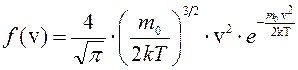 где обозначения: N – общее число молекул газа, dN – число молекул, скорости которых заключены в определенном интервале, v – нижняя граница интервала скоростей, dv – величина интервала скоростей, k = 1,38*10–23 Дж/К – постоянная Больцмана, е=2,718… m0 – масса молекулы. Закон распределения Максвелла запишется в следующем виде: