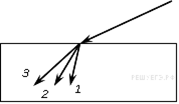 7. Для видимого света угол преломления световых лучей на некоторой границе раздела двух сред увеличивается с увеличением частоты излучения. Ход лучей для трех цветов при падении белого света из воздуха на границу раздела показан на рисунке. Цифрам соответствуют цвета