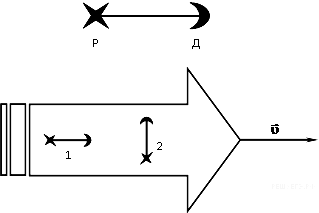 Проводя эксперименты с двумя установками 1 и 2, расположенными в космическом корабле, летящем со скоростью V =