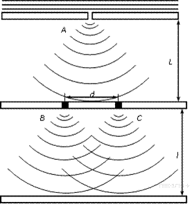 51. В классическом опыте Юнга по дифракции пучок света прошедший через узкое отверстие А, освещает отверстия В и С, за которыми на экране возникает интерференционная картина (см. рисунок). Если увеличить L вдвое, то