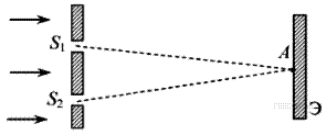 49. Два точечных источника света и находятся близко друг от друга и создают на удаленном экране устойчивую интерференционную картину (см. рисунок). Это возможно, если и S1 и S2 — малые отверстия в непрозрачном экране, освещенные