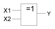 Аналогично, если к выходу элемента ИЛИ-НЕ прилепить инвертор, то получится элемент ИЛИ. Базис "ИСКЛЮЧАЮЩЕЕ-ИЛИ" Операция, выполняемая таким элементом называется сложение по модулю два и обозначается плюсиком в кружочке, т. е. вот таким символом