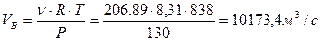 Находим объем бутана при давлении P=130 КПа (давление в реакторе дегидрирования), при температуре T=838К (температура в реакторе дегидрирования) по уравнению Менделеева-Клайперона: