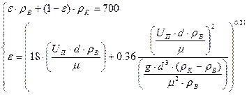 Где М – молярная масса бутана, 58г/моль; Р – давление в реакторе, 130 КПа; R – газовая постоянная, 8,31 Дж/(моль*К); Т – температура в реакторе, 828К. Найдем порозность псевдоожиженного слоя ε используя систему уравнений:
