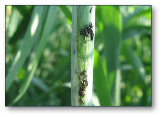 Для защиты посевов от комплекса вредителей, следует планировать химические обработки на полях, где численность вредителей достигает экономического порога вредоносности. Для более рационального использования инсектицидов и снижения потерь урожая зерна большое значение имеет совмещение обработок против нескольких видов вредителей. Химические обработки против вредителей, если численность их превышает порог вредоносности, проводятся в три срока: первая обработка в фазу двух-трех листьев пшеницы против скрытостебельных вредителей; вторая обработка - в фаза выхода в трубку против имаго пшеничного трипса и третья обработка - в фазу молочной и молочно-восковой спелости зерна против личинок пшеничного трипса и гусениц серой зерновой совки. В современных условиях наиболее экономичным приемом химической защиты являются совмещенные обработки посевов баковыми смесями фунгицидов и инсектицидов (или гербицидов, фунгицидов и инсектицидов) против комплекса вредных организмов, особенно если обработки посевов необходимо проводить в одну фазу развития пшеницы. Важно отметить, что борьба с вредителями и болезнями является одним из эффективнейших мероприятий, направленных на получение высоких урожаев зерна. Исключение из технологической цепочки мероприятий по защите посевов от насекомых-вредителей и возбудителей болезней приводит к увеличению численности вредных организмов, накоплению инфекций и потерям урожая [38]. Большой вред посевам наносят скрытостебельные вредители: большая и малая стеблевые блошки, шведская и гессенская мухи. В засушливые годы вредносность пшеничного трипса усиливается, предполагаемая численность от 5 до 10 имаго (взрослое насекомое) на колос или 250-500 экземпляров на 20 взмахов сачком. Если численность личинок составит 40-60 экземпляров на колос, потери урожая могут составить 1,5-2,5ц.га. Обработку инсектицидами против гессенской мухи проводят при наличии 30-40 мух на 100 взмахов сачком. Следует внимательно отнестись к обследованию данным вредителем от фазы всходов до кущения яровой пшеницы. Нужно помнить, что химические обработки против вредителей, если они превышают порог вредоносности, проводятся в три срока: первый срок в фазу двух-трех листьев яровой пшеницы-против скрытостебельных вредителей: гессенской мухи, стеблевой блошки и шведской мухи: второй срок-фаза конец трубкования-против имаго пшеничного трипса и третья химическая обработка возможна в фазу молочной и молочно-восковой спелости против личинок пшеничного трипса и серой зерновой совки. В данные сроки следует регулярно проводить наблюдения и обследования посевов и принимать соответствующие решения. При организации химических мер борьбы с вредными насекомыми необходимо руководствоваться экономическими порогами вредоносности, биологическими особенностями насекомых, применяемыми препаратами и сроком проведения химических обработок. В наших опытах против скрытостебельных вредителей и пшеничного трипса применялся инсектицид Децис экстра,20% в.к. В годы исследований проявление скрытостебельных вредителей и серой зерновой совки отмечено ниже ЭПВ. Наибольшее распространение получила заселенность посевов пшеничным трипсом. По результатам обследования растений пшеницы на повреждаемость пшеничным трипсом, (таблица 3.6) следует отметит