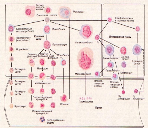 Образование эритроцитов, или эритропоэз, происходит в красном костном мозге. Эритроциты вместе с кроветворной тканью носят название “красного ростка крови”, или эритрона. Для образования эритроцитов требуются железо и ряд витаминов. Железо организм получает из гемоглобина разрушающихся эритроцитов и с пищей. Трехвалентное железо пищи с помощью вещества, находящегося в слизистой кишечника, превращается в двухвалентное железо. С помощью белка трансферрина железо, всосавшись, транспортируется плазмой в костный мозг, где оно включается в молекулу гемоглобина. Избыток железа депонируется в печени в виде соединения с белком – ферритина или с белком и липоидом – гемосидерина. При недостатке железа развивается железодефицитная анемия. Для образования эритроцитов требуются витамин В12 (цианокобаламин) и фолиевая кислота. Витамин В12 поступает в организм с пищей и называется внешним фактором кроветворения. Для его всасывания необходимо вещество (гастромукопротеид), которое вырабатывается железами слизистой оболочки пилорического отдела желудка и носит название внутреннего фактора кроветворения Касла. При недостатке витамина В12 развивается В12-дефицитная анемия, Это может быть или при недостаточном его поступлении с пищей (печень, мясо, яйца, дрожжи, отруби), или при отсутствии внутреннего фактора (резекция нижней трети желудка). Считается, что витамин В12 способствует синтезу глобина, Витамин В12 и фолиевая кислота участвуют в синтезе ДНК в ядерных формах эритроцитов. Витамин В2 (рибофлавин) необходим для образования липидной стромы эритроцитов. Витамин В6 (пиридоксин) участвует в образовании гема. Витамин С стимулирует всасывание железа из кишечника, усиливает действие фолиевой кислоты. Витамин Е (a -токоферол) и витамин РР (пантотеновая кислота) укрепляют липидную оболочку эритроцитов, защищая их от гемолиза. Для нормального эритропоэза необходимы микроэлементы. Медь помогает всасыванию железа в кишечнике и способствует включению железа в структуру гема. Никель и кобальт участвуют в синтезе гемоглобина и гемсодержащих молекул, утилизирующих железо. В организме 75% цинка находится в эритроцитах в составе фермента карбоангидразы. Недостаток цинка вызывает лейкопению. Селен, взаимодействуя с витамином Е, защищает мембрану эритроцита от повреждения свободными радикалами. Физиологическими регуляторами эритропоэза являются эритропоэтины, образующиеся главным образом в почках, а также в печени, селезенке и в небольших количествах постоянно присутствующие в плазме крови здоровых людей. Эритропоэтины усиливают пролиферацию клеток-предшественников эритроидного ряда – КОЕ-Э (колониеобразующая единица эритроцитарная) и ускоряют синтез гемоглобина. Они стимулируют синтез информационной РНК, необходимой для образования энзимов, которые участвуют в формировании гема и глобина. Эритропоэтины увеличивают также кровоток в сосудах кроветворной ткани и увеличивают выход в кровь ретикулоцитов. Продукция эритропоэтинов стимулируется при гип Об интенсивности эритропоэза судят по числу ретикулоцитов – предшественников эритроцитов. В норме их количество составляет 1 – 2%. Созревшие эритроциты циркулируют в крови в течение 100 – 120 дней. Разрушение эритроцитов происходит в печени, селезенке, в костном мозге посредством клето