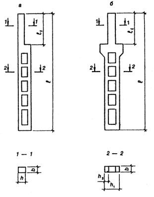 Шаг колонн основного каркаса – 6м. Колонны основного каркаса крайнего ряда имеют нулевую привязку к продольной оси, и центральную привязку к поперечным осям (кроме торцов здания). Колонны среднего ряда имеют центральную привязку и к продольным, и к поперечным осям (кроме торцов здания). У торцов здания ось колонн основного каркаса смещена вовнутрь здания на 500 мм относительно крайних поперечных осей. Такое расположение колонн даёт возможность обеспечить возможность удобного крепления торцовой стены к колоннам фахверка по всей высоте здания. Для крепления торцовой стены к колоннам основного каркаса в зазор между колонной и стеной устанавливаются стальные приколонные стойки фахверка швеллерного типа, привариваются к закладным деталям железобетонных колонн, опираются на обрезы фундаментов. Колонны, в свою очередь, имеют закладные детали сверху – для опирания на них основных несущих конструкций покрытия, на боковых гранях колонны – для крепления стеновых панелей и связей. Рис. 5 Колонны: а) колонны крайнего ряда; б) колонны среднего ряда; в) колонны торцового фахверка