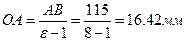 На основі розрахункових даних робочого процесу будується індикаторна діаграма. Перш ніж приступити до побудови діаграми необхідно вибрати її масштаб. На початку побудови на осі абсцис відкладають відрізок АВ, що відповідає робочому об’єму, який визначають: АВ=Sn=86мм, Відрізок ОА, що відповідає об’єму камери згоряння, визначається із співвідношення: