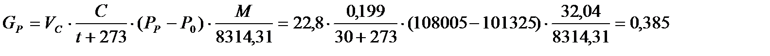 С – концентрация насыщенных паров жидкости, об. доли; М – молекулярная масса газа или пара, кг/моль: 8314,31 – универсальная газовая постоянная, Дж/(кмоль∙К) Концентрация насыщенного пара рассчитывается по формуле: