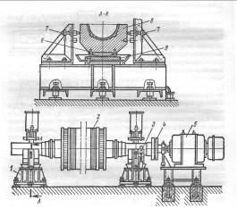 Рис.11. Станок для динамической балансировки роторов: 1 - стойка; 2 - балансируемый ротор; 3 - индикатор стрелочный; 4 - муфта; 5 - привод