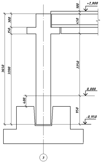 Рис.11. Определение конструктивной длины колонны 2.4.6. Расчёт продольного армирования колонны первого этажа Величина случайного эксцентриситета: lcol / 600 = (Нcl – hриг / 2) / 600 = (3200 – 450 / 2) / 600 = 4,96 мм hc / 30 = 300 / 30 = 10 мм 20 мм Принимаем величину случайного эксцентриситета е0 = еа =20 мм. Расчётная длина колонны l0 = β ⋅ lw = 1,0⋅3,2 = 3,2 м. где: β - коэффициент, учитывающий условия закрепления; для колонн принимается равным единице; lw - высота элемента в свету. При рассмотрении расчётной длины колонны из плоскости lw принимается равным высоте колонны. Определяем условную расчётную длину колонны: leff = l0 ⋅ √ К = 3,2 ⋅ √1, = 4,18 м; К = 1+ 0,5 ⋅ NSd,lt / NSd ⋅ φ(∞, t0) = 1+0,5⋅ (796,48/1128,23)⋅2,0 = 1+0,71 = = 1,71; φ(∞, t0) - предельное значение коэффициента ползучести, для бетона принимается равным 2,0. Тогда гибкость колонны: λi = leff / hс = 4180 / 300 = 13,93. Определяем коэффициент, учитывающий влияние продольного изгиба и случайных эксцентриситетов. По таблице 3. приложение 7. определяем коэффициент, учитывающий влияние продольного изгиба и случайных эксцентриситетов по λi = 13,93 и относительной величине эксцентриситета e0 / h = 20 / 300 = 0,067: φ = 0,796.