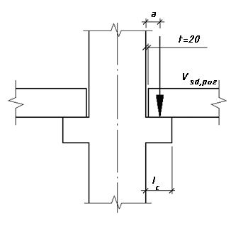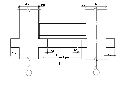 Рис.14. Схема опирания ригеля Расчетный пролет ригеля: leff,риг = l – 2 ⋅ bc / 2 – 2 ⋅ 20 – 2 ⋅ (lc - 20) / 2 = = 7000–2⋅300/2–2⋅20–2⋅ (150-20)/2=6930 мм = 6,53 м Vsd,риг = q⋅ leff,риг / 2 = 31,65⋅6,53 /2 = 103,34 кН Длина площадки опирания: lsup = lс – 20 = 150 – 20 = 130 мм. Расстояние от точки приложения Vsd,риг до опорного сечения консоли: a = lc – lsup / 2 = 150 - 130 / 2 = 85 мм. Требуемую площадь сечения продольной арматуры подбираем по изгибающему моменту MSd, увеличенному на 25%. Момент, возникающий в консоли от ригеля: Msd,риг = 1,25 ⋅ Vsd,риг ⋅ a = 1,25⋅ 103340⋅ 85 = 10979875 Н⋅мм. Принимаем с = 30 мм. d =150 − 30 =120 мм; Ast = Msd / fyd ⋅ (d - с)= 10979875/365⋅ (120-30) = 271,11 мм2 Принимаем 2 ∅14 S500 As1 = 308 мм2. Date: 2015-07-27; view: 1655; Нарушение авторских прав |