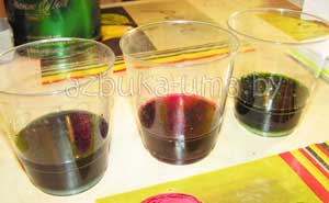 МАТЕРИАЛЫ:прозрачные стаканчики, пищевые красители (гуашь, акварель), теплая вода
