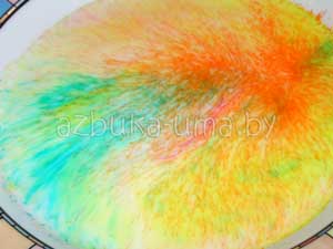 МАТЕРИАЛЫ: Тарелка с молоком, пищевые красители, средство для мытья посуды, ватная палочка