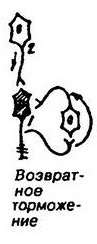 Механизм пресинаптического торможения: Гистологическим субстратом такого торможения является аксональные синапсы. К возбуждающему аксону подходит вставной тормозной аксон, который выделяет тормозной медиатор ГАМК (гамма-аминомасляная кислота). Этот медиатор действует на постсинаптическую мембрану, которая является мембраной возбуждающего аксона, и вызывает в ней деполяризацию. Возникшая деполяризация тормозит вход Са2 + из синаптической щели в заключение возбуждающего аксона и таким образом приводит к снижению выброса возбуждающего медиатора в синаптическую щель, торможение реакции. Пресинаптическое торможение достигает максимума через 15-20 мс и длится около 150 мс, то есть гораздо дольше, чем постсинаптическое торможение. Пресинаптическое торможение блокируется судорожными ядами - бикулином и пикротоксин, которые являются конкурентными антагонистами ГАМК. Механизм постсинаптического торможения: Обусловлено выделением пресинаптическим окончанием аксона тормозного медиатора, который снижает или тормозит возбудимость мембран сомы и дендритов нервной клетки, с которой он контактирует. Оно связано с существованием тормозных нейронов, аксоны которых образуют на соме и дендритах клеток нервных окончаний, выделяя тормозные медиаторы - ГАМК и глицин. Под влиянием этих медиаторов возникает торможение возбуждающих нейронов. Примерами тормозных нейронов являются клетки Реншоу, клетки Пуркинье, звездчатые клетки коры большого мозга и др. В основе гиперполяризации мембраны сомы нейрона лежит повышение проницаемости постсинаптической мембраны для К+. Вследствие гиперполяризации уровень мембранного потенциала удаляется от критического (порогового) уровня. То есть происходит его увеличение - гиперполяризация. Это приводит к торможению нейрона. 28. Возвратное торможение.(?Гиппокамп и образная память) Нейроны ЦНС могут тормозить сами себя путём отрицательной обратной связи. Так, мотонейроны спинного мозга сразу после отхождения аксона от тела нервной клетки, посылают возвратные коллатерали, образующие синапсы с тормозными вставочными нейронами (клетки Реншоу). Клетки Реншоу иннервируют мотонейроны, направившие к ним возвратные коллатерали. Этот нейронный круг с обратной связью работает следующим образом. Мотонейрон, посылая сигналы к мышцам, одновременно активирует через возвратную коллатераль клетку Реншоу. Возбуждённая клетка Реншоу выделяет из пресинаптических терминалей глицин, и под его влиянием замедляются или тормозятся разряды мотонейрона. Возвратное торможение наблюдается также в коре больших полушарий и лимбической системе.
