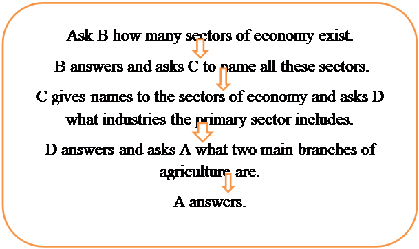 Exercise 5. You will work in small groups. Make up short dialogues using the given scheme. Each group gets its own scheme. GROUP WORK. All students are divided into three groups of 4 people. They have tasks on cards. You are to ask and answer questions about the text. Now look at the slide for you to better understand how to work. You ask questions according to the model.