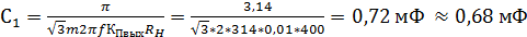 С1=0,68 мФ => С2=0,47 мФ, далее