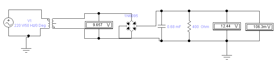 Исследование работы спроектированной схемы ИВП будем проводить при помощи программы Electronics Workbench. Т.к. в схему введено балластное сопротивление, то необходимо изменить параметры трансформатора для повышения вторичного напряжения