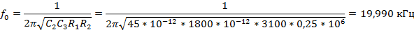 2.2 Рассчитаем значения всех элементов схемы фильтра С2, R1, R2