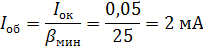 4. Определим параметры входной цепи. 4.1 Рассчитаем ток смещения базы, соответствующий точке О, при наихудшем транзисторе (bмин=25)
