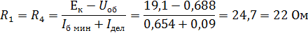6. Рассчитаем сопротивления делителя R1 – R4, задающих исходное состояние транзисторов.