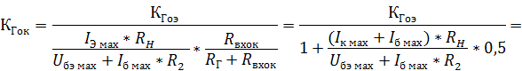 но т.к. у нас схема с ОК, то отрицательная обратная связь снизит коэффициент гармоник до: