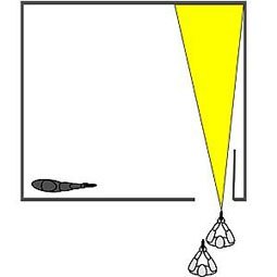 При слабой освещенности шансы на успешную зачистку помещения повышаются применением тактического освещения. Во-первых, пользуясь лучом ручного или боевого фонаря для систематического сканирования значительной площади помещения, не входя в него, сотрудник осматривает и берёт под свой контроль все участки комнаты, которые видны из-за двери. Осветительные приборы необходимо применять так, чтобы находящемуся внутри появление и движение света представлялись хаотичными. В результате такой зачистки единственным неисследованным участком помещения — в изображенном на рисунках случае — останется непросматриваемая «мертвая зона» вдоль стены, примыкающей к двери.
