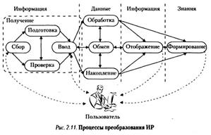 Процедуры сбора, подготовки, проверки и ввода информации в ИТ организационно-экономических систем процесса «Получение» по своей реализации являются в основном ручными (кроме процедур проверки и ввода, которые могут быть частично автоматизированными). В процессе ввода информация преобразуется в данные, имеющие форму цифровых кодов, реализуемых на физическом уровне с помощью различных физических явлений (электрических, магнитных, оптических, механических и т.д.). Следующие за процессом «Получение» информационные процессы уже производят преобразование данных. Эти процессы протекают в ЭВМ под управлением различных программ. Процесс обработки данных включает в себя процедуры преобразования значений и структур данных путем моделирования, логического вывода и др., а также процедур организации вычислений. Процесс «Отображение» содержит процедуры преобразования данных в форму, удобную для восприятия: звук, изображение – текстовое, цифровое, графическое, видео, твердая копия на бумаге. Процесс формирования знаний является составной частью базовой информационной технологии, поскольку ее высшим продуктом является знание. Формирование знания как высшего информационного продукта до сих пор являлось прерогативой человека. Автоматизированный процесс предоставления знаний может оказать помощь при решении трудно формализуемых задач. В этом процессе объединяются такие процедуры, как формализация знаний, их накопление и генерация (вывод) новых знаний на основе накопленных в соответствии с поставленной задачей, объяснение полученных автоматизированным путем знаний. Процесс «Обмен» предполагает передачу данных между всеми процессами ИТ и связан со всеми процедурами на уровне данных. При обмене данными можно выделить три основных типа процедур: коммутация, маршрутизация (передача данных по каналам связи и организации сети) и передача. Процедуры передачи данных реализуются с помощью операции кодирования-декодирования, модуляции-демодуляции, согласования и усиления сигналов. Операции по организации сети включаются в качестве основных в процедуры коммутации и маршрутизации потоков данных (трафика) в вычислительной сети. Процесс обмена позволяет передавать данные между абонентами и используется в процессах получения и отображения информации, а также он способствует процессу накопления информации, поступающей из многих источников. Процесс накопления позволяет преобразовывать информацию, длительное время хранить, постоянно обновляя, и при необходимости оперативно извлекать в заданном объеме и по определенным признакам. Процедуры этого процесса – архивирование, обновление и поиск – состоят в организации хранения (быстрое и неизбыточное накопление данных по заданным признакам и не менее быстрое осуществление их поиска) и актуализации данных (поддержание хранимых данных на уровне, соответствующем информационным потребностям решаемых задач). Актуализация данных осуществляется с помощью операций добавления новых данных, корректировки (изменения значений или элементов структур) данных и их уничтожения. В информатике часто используют слова «информация» и «данные», причем часто как взаимозаменяемые. Хотя в необходимых случаях специалисты отмечают и их смысловое различие. Например, «информация кодируется с помощ