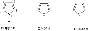 Пиррол, фуран и тиофен являются пятичленными гетероциклическими соединениями с одним гетероатомом.