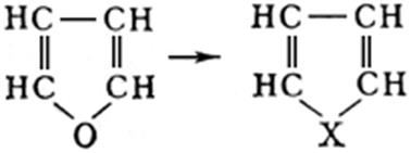 ü Ю рьева ре а кция, превращение фурана в его аналоги — пиррол (X = NH), тиофен (X = S), селенофен (X = Se):