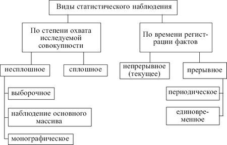 Задачей общей теории статистики является определение форм, видов и способов статистического наблюдения для решения вопроса, где, когда и какие приемы наблюдения применять. Приведенная ниже схема иллюстрирует классификацию видов статистического наблюдения (рис. 2.2).