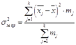 где k – количество групп, на которые разбита вся совокупность; mj – количество объектов, наблюдений, включенных в группу j;