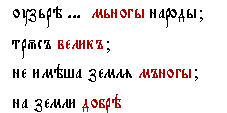 В отличие от современного русского языка, в котором краткие формы прилагательных практически всегда выступают в качестве сказуемого, в старославянском языке именные формы последовательно выступали в функции определения, например: