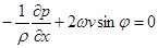 Геострофический и градиентный ветер. Прямолинейное равномерное движение воздуха под действием силы Кориолиса и горизонтального градиента давления называется геострофическим ветром. Пусть сила градиента давления направлена вдоль оси x. Если она уравновешена силой Кориолиса, для движения вдоль оси y имеем: