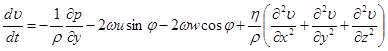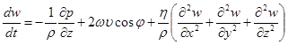 С учётом вязкости и скорости w уравнения движения запишутся в виде:
