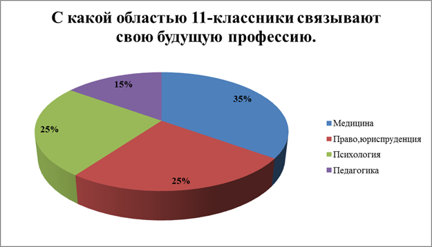 Наиболее предпочтительными оказались следующие профессии:Медицина, право, юриспруденция, психология, педагогик. 3. Учащимся был предложен список наиболее важных факторов при выборе будущей профессии: - Возможность профессионального роста. - Востребованность профессии на рынке труда - Престижность профессии - Уровень оплаты труда - Пример и опыт друзей, знакомых - Советы родителей - Советы друзей - Желание продолжить обучение в конкретном профессиональном учебном заведении - Пока ничего не повлияло, выбор не сделан