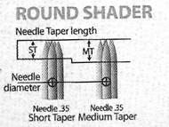 Часто бывает так, что аппарат для перманентного макияжа укомплектован лишь одним из видов круглых игл («сведенная» или «разведенная»). Иногда иглы для татуажа имеют необозначенную форму. То есть, представляют из себя, что-то среднее, между плотно сведенной (лайнером) и разведенной (шейдером).