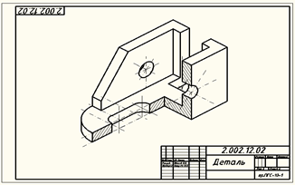 - ГОСТ 2.302-68. Масштабы; - ГОСТ 2.303-68*. Линии; - ГОСТ 2.304-81. Шрифты чертежные; - ГОСТ 2.305-68*.Изображения – виды, разрезы, сечения; - ГОСТ 2.307-68. Нанесение размеров и предельных отклонений; - Гост 2.317-69*. Порядок выполнения. Рис.93 Работа выполняется на формате А3 В тонких линиях строятся заданные изображения детали – главный вид и вид сверху. По двум заданным изображениям строится третье.- вид слева. Следующий этап – построение разрезов. Разрезы выполняются для определения внутреннего строения детали. На главном виде разрез изображается полностью, т.к. деталь несимметрична. В случае симметричного изображения - выполняется половина вида и половина разреза. Вид и разрез разграничиваются осевой линией. На виде слева - выполняется сложный ступенчатый разрез. В соответствии со стандартом все элементы, мысленно рассеченные плоскостью, заштриховываются тонкими сплошными линиями под углом 45 градусов к рамке листа.