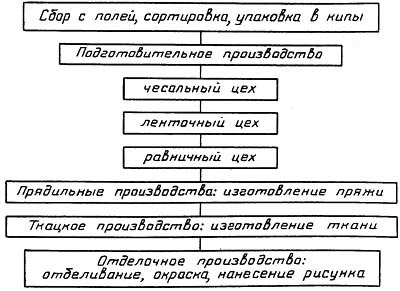 Хлопчатник — однолетнее растение, волокна находятся в семенах коробочки. Длина волокна 20—50 мм. Наилучшим считается хлопок с длинным тонким прочным волокном. Короткие волокна используют для изготовления бумаги, вискозы. Основную массу хлопкового волокна перерабатывают в пряжу и лишь из небольшой его части, а также из пуха изготавливают медицинскую, одежную, мебельную вату и разные ватные изделия. Из хлопчатобумажной пряжи вырабатывают разнообразные ткани, трикотаж, нетканые полотна, гардинно-тюлевые изделия, а также швейные нитки, шнуры, веревки, канаты, тесьму, ленты и т. д. Из семян после шелушения отжимают пищевое и техническое хлопковое масло. Хлопок является очень универсальным сырьем. Хлопчатобумажная ткань сильно мнется, при стирке может сильно садиться, медленно сохнет. Белые изделия стирают в воде температурой 95 °С, цветное белье — 40 °С. Используют универсальные моющие средства. Изделия из хлопка можно гладить утюгом на позиции «хлопок — лен», но следует их предварительно увлажнить или включить увлажнитель. Сырьем для получения льняных тканей является льняное волокно, получаемое из стеблей льна (рис. 3).