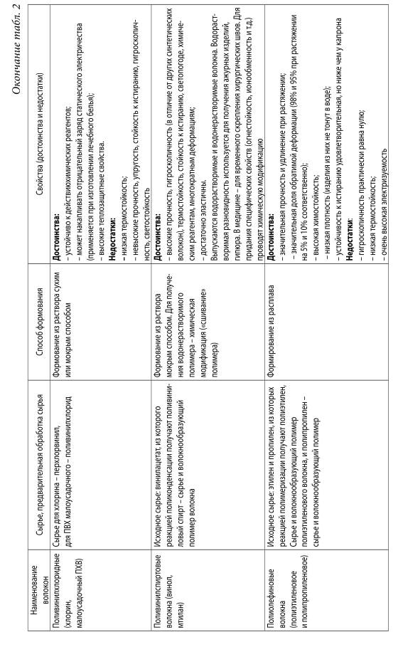 Поливинилспиртовые волокна. Эти волокна синтезируют из винилацетата, полимеризуя его до поливинилацетата. К поливинилспиртовым водонерастворимым волокнам относятся винол, летилан. Винол вырабатывают из поливинилового спирта. Это наиболее дешевое волокно из всех синтетических волокон. Поливиниловый спирт (ПВС) растворим в воде. Формование волокна осуществляют из водного раствора, в осадительной ванне используют растворы солей (сульфат аммония или натрия). Полученное волокно легко растворяется в воде. Поэтому его используют в медицине как нити для швов, не требующих удаления, а также в военном деле для изготовления парашютов, прикрепляемых к морским минам. Для придания волокнам нерастворимости в воде их дополнительно обрабатывают формальдегидом (СН2О).Поливинилспиртовые волокна в России называют винол, в Японии – куранол, винилон, в США – винал. Волокно прочное (Lp = 35 рkм), эластичное (ε = 7–25 %), по гигроскопичности (W = 4–5 %) приближается к хлопку, устойчиво к истиранию, характеризуется высокой теплостойкостью., термопластично – температура размягчения волокна равна 200–230 °С, светостойко [1]. Волокно устойчиво к действию микроорганизмов и бензина, поэтому используется для изготовления бензошлангов. Хемостойкость у винола меньше чем у других синтетических волокон. При внесении в пламя волокно дает тепловую усадку, плавится и затем медленно горит желтоватым пламенем. Винол применяется в чистом виде и в смеси с хлопком, шерстью и другими волокнами для изготовления бельевых, плательных и костюмных тканей, швейных ниток и разнообразных изделий. Летилан – водорастворимое волокно желтого цвета, применяется в медицине при создании предметов личной гигиены, так как обладает антимикробными свойствами и [14]. Водорастворимая разновидность поливинилспиртовых волокон используется в текстильной промышленности в качестве вспомогательного (удаляемого) волокна при производстве ажурных изделий, тонких тканей, материалов пористых волокнистых структур, а также при изготовлении гипюра (взамен натурального шелка). Полиолефиновые волокна. Наиболее привлекательны для текстильной промышленности полиэтиленовые и полипропиленовые волокна из-за широкой сырьевой базы (пропилен и этилен получают при крекинге или пиролизе нефти). В России их называют полипропилен и полиэтилен, в США – политен, в Англии – курлен, в Италии – мераклон. Полиэтиленовые и полипропиленовые волокна имеют очень прочную, упорядоченную структуру молекул, высокие прочностные и электроизоляционные свойства. Они гидрофобные, не горят, по весу являются самыми легкими и для них характерно явление пиллинга. Полиолефиновые волокна и нити характеризуются высокой устойчивостью к действию кислот, щелочей, не ус тупают по показателям хемостойкости хлорину. Их устойчивость к истиранию ниже, чем полиамидных нитей, особенно полипропи леновых. Теплостойкость полиолефиновых нитей небольшая. При температуре 80 °С полиэтиленовая нить теряет около 80 % первоначальной прочности. Гигроскопичность нитей почти равна нулю, поэтому окрашивание их возможно только введением пигмента в полимер перед формованием. С низкой гигроскопичностью связана и значительная электризуемость этих нитей. Плотность полиэтиленовых и полипро-пиленовых нитей очень низкая, поэтому изделия из них не тонут