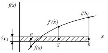 Приближенные значения корней уточняют различными итерационными методами, наиболее эффективными из которых являются метод дихотомии, метод Ньютона, метод секущих. Метод дихотомии Во многих научных и инженерных задачах возникает необходимость решения уравнений вида где f – заданная функция; x – неизвестная переменная; Считаем, что в уравнении (1) отделение корней проведено и на отрезке [a,b] расположен только один корень (рис. 1.1.).
