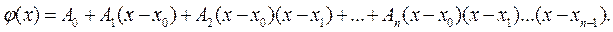 Интерполяционный многочлен для метода разделенных разностей имеет вид