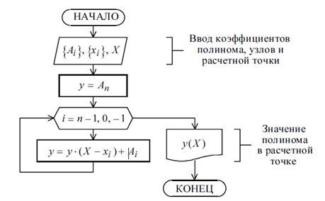 Блок-схема алгоритма вычисления коэффициентов полинома по схеме Горнера