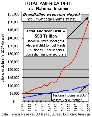 Кроме государственного долга есть: Итого 42.5 трлн. - это данные на 3-й квартал прошлого (2006) года; а т.к. нынче американцы наращивают совокупный долг средним темпом около 5 трлн. долларов в год, сейчас сумму резонно оценить в 45 трлн.)