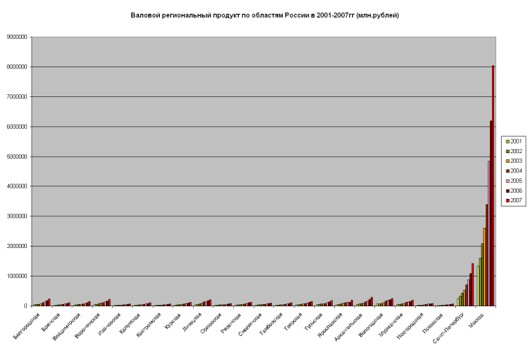 Удивительно. Точно такой же неравномерный характер распределения. Наверное все дело в том, что в Костроме люди не только не умеют работать, но и сразу рождаются с растущими не из плеч руками. А вот в Москве...! Ну на то она и Москва. Столица. Ну еще чуть-чуть умеют работать в Санкт-Петербурге... всю остальную страну лучше и не упоминать.
