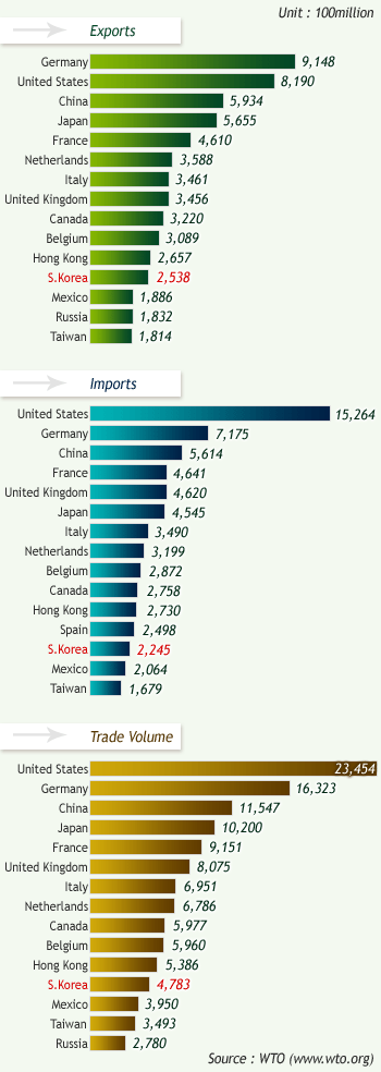 Обратите внимание на рисунке слева на структуру "экспорта-импорта" в рамках ВТО. Любопытнее всего сравнить объем экспорта США (зеленая гистограмма) с их импортом (синяя). Хорошо видно, что импорт США примерно в два раза превышает экспорт. Подборку основных соглашений ВТО навязываемых развивающимся странам при поддержке внутренней компрадорской буржуазии, для которой это единственный способ быстрого обогащения "пока не отобрали все" можно посмотреть здесь. (В принципе они "симметричны" для стран. Дисбаланс в торговле возникает не столько от самих договоров, сколько от изначального неравенства стран по уровню развития, которое не уменьшается а только увеличивается в условиях "свободной торговли". см. выше " Экспоненциальная разница в накоплении капитала при «свободной торговле ". Договора просто закрепляют и фиксируют это неравенство.) В совокупности с политикой Центробанка рефинансирования в собственной денежной единицы делающий невозможным длительное кредитование для создания и развития своей промышленности.) Плюс заниженный курс местной валюты путем скупки импортной валюты под эмиссию внутренней. (Делающий внутреннюю товарную массу более доступной для "внешнего" покупателя) Плюс открытость финансовых границ не ограничивающих экспансию внешнего капитала внутрь страны под меньший, чем у местного Центробанка процент. Плюс то, что этот зарубежный кредит всегда предоставляется на конкретные цели. Как правило это либо экспорт сырья. "Инвестиции в перекачивающую трубу". Либо "потребительский кредит" на приобретение зарубежных промышленных товаров. Чем поддерживается спрос на промышленность другой страны и подавляется местное производство. - Все в совокупности приводит к вымыванию товарной массы из страны и наводнение ее денежной. Причем эта денежная масса выражена во "внутренней" валюте. А "долларовая" или "Евро" идет "в резервы", "стабфонды" и т.п. И не обесценивается, в отличии от "рубля" или "гривны". А это и есть инфляция, про которую не замолкают кричать все телеканалы, не издавая ни звука о реальных ее причинах. Да действительно. Вступив в ВТО вы и в самом деле получите более дешевое импортное мясо, автомобили, мобильники и ноутбуки. Но все это вы будете получать только до тех пор, пока от вас будет идти встречный поток в виде нефти, газа, слябов, леса. Попробуйте задуматься. Стоит ли один диск с "Microsoft Office Professional Plus 2007" (сколько бы ни стоила его разработка. Пусть даже над ней трудилось... страшно сказать... - несколько сотен программистов! При тиражах на весь мир она все равно будет приближаться к 40-центовой стоимости шлепка матрицы по болванке компакт диска) 1 тонне нефти добытой и доставленной на нефтеперерабатывающий завод в Евросоюзе? Странный товарообмен, не правда ли? Как работает система выкачки ресурсов хорошо видно в цифрах. Советский Союз, который (судя по крикам современной прессы) все свое существование обеспечивал только нефтяной трубой на грани своего развала в 1991 году добыл 462 млн.т нефти. Из них на экспорт ушло аж 57 млн.т. а оставшиеся 405 млн.т. обеспечивали работу промышленности, сельского хозяйства, автобусы по 5 копеек за талончик, метро столько же и самолеты (я лично учась в ХГУ по студенческому билету летал из Харькова в Москву на выставку Пикассо за 12 рублей. Стипендия на радиофизическом была повышенной. Целых 55 