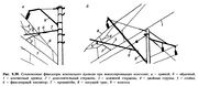 Zd 8 28.jpg Жесткая поперечина – служит для подвешивания проводов контактной сети, расположенных над несколькими (2-8) путями. Жесткая поперечина выполняется в виде блочной металлической конструкции (ригеля), установленной на двух опорах (рис. 8.28). Такие поперечины используют также для разрекрываемого пролета. Ригель со стойками соединен шарнирно или жестко с помощью подкосов, позволяющих разгрузить его в середине пролета и уменьшить расход стали. При размещении на ригеле осветительных приборов на нем выполняют настил с перилами; предусматривают лестницу для подъема на опоры обслуживающего персонала. Устанавливают жесткие поперечины гл. обр. на станциях и раздельных пунктах.