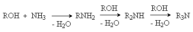 Спирты алкилируют аммиак и амины в присутствии катализаторов дегидратации (Al2O3, SiO2) при 300-5000C. В этом случае также образуется смесь продуктов моно-, ди- и триалкилирования.