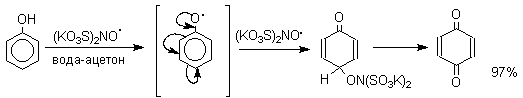 Приведенный на этой схеме циклогексадиеноновый интермедиат был выделен, что доказывает механизм одноэлектронного окисления фенолов солью Фреми. Другим одноэлектронным окислителем фенолов является карбонат серебра. Этот реагент, согласно данным последних лет, особенно пригоден для окисления 1,2-дигидроксибензола и его производных до орто-хинона.